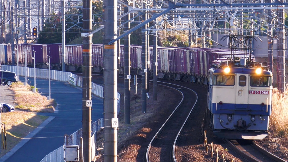 ◇東海道本線(熱海-大府) 名峰・富士山を各所で仰ぎながら、EF210形式牽引の長大貨物列車が日本最大の物流幹線を疾走する。運用が激減したEF66形式100番代や既に終了したEF65形式2000番代も収録。 ◇武豊線・衣浦臨海鉄道 衣浦臨海鉄道保有のディーゼル機関車牽引の列車が武豊線に直通。半田埠頭ではDE10形式タイプのKE65形の列車が到着しタブレットを投下。 ◇東海道本線(笠寺-関ヶ原)・あおなみ線 多数の貨物列車が折り返し点とする稲沢には、JR東日本から譲渡されたEF510形式500番代や、2025年3月から運用が始まったEF64形式とEF210形式の重連による列車が発着する。名古屋貨物ターミナル行き列車はあおなみ線を経由。米原方面に向かう東海道本線の列車は下り専用の「新垂井線」を経由する。 ◇西濃鉄道・名古屋臨海鉄道 DE10形機関車の牽引で西濃鉄道市橋線を出発した石灰石列車は、東海道本線支線(美濃赤坂線)を経て名古屋臨海鉄道東港線から南港線へ。東築線では名古屋鉄道向け甲種輸送も行われる。 ◇中央本線(中央西線下り・中央東線上り・下り) 中央西線ではEH200形式の進出により運用の減少したEF64形式が、重連で石油輸送に当たった。中央東線ではEH200形式が全ての貨物運用を担う。 ◇しなの鉄道・信越本線・篠ノ井線 EH200形式が牽引する根岸発の石油列車は、一部がしなの鉄道・坂城まで乗り入れ。中央西線のコンテナ列車は信越本線・北長野まで直通する。それらを結ぶ篠ノ井線では、スイッチバック式の桑ノ原信号場で対向列車を退避。姨捨の絶景区間を駆け上がる。 ◇中央本線(中央西線上り) 既に消滅したEF64形式の大宮更新色や重連運用も収録。南松本発の上り石油返空列車は、稲沢で牽引機がDF200形式に交代し、関西本線に向かう。 ◇関西本線・三岐鉄道 非電化の「塩浜貨物線」や側線に直通するため貨物列車はディーゼル機関車が牽引。2021年に引退したDD51形式は、関西本線がJR貨物最後の運用区間となった。ED45形が重連で牽引する三岐鉄道三岐線のセメント列車は、富田からはDF200形式に牽引され、跳開式可動橋の末広橋梁を渡る。 |